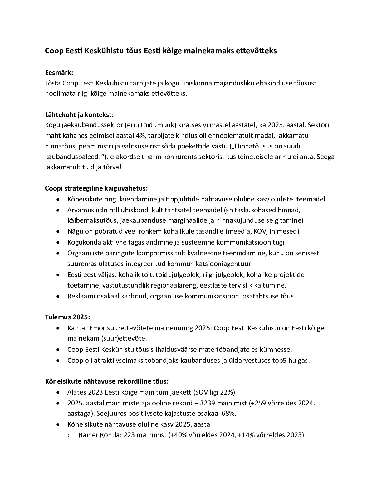 • 2026: 7.5. Korporatiivkommunikatsioon