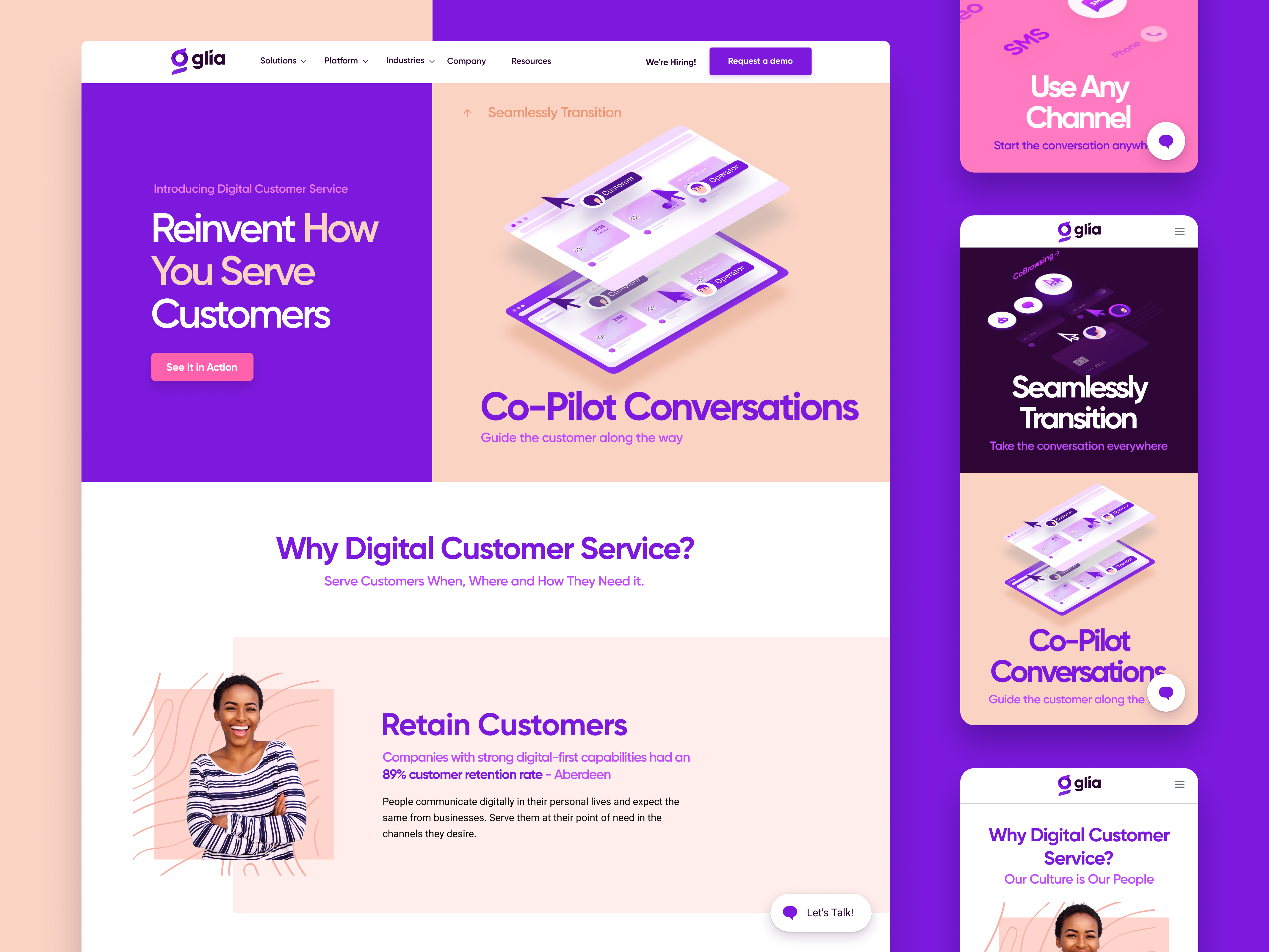 Glia arendab finantsettevõtetele mõeldud digitaalset klienditeenindusplatvormi, mis on kooslus ühisbrausimisest (cobrowsing), videovestlusest, häälsuhtlusest ja masinõppel toimivast juturobotite raamistikust (AI Management).