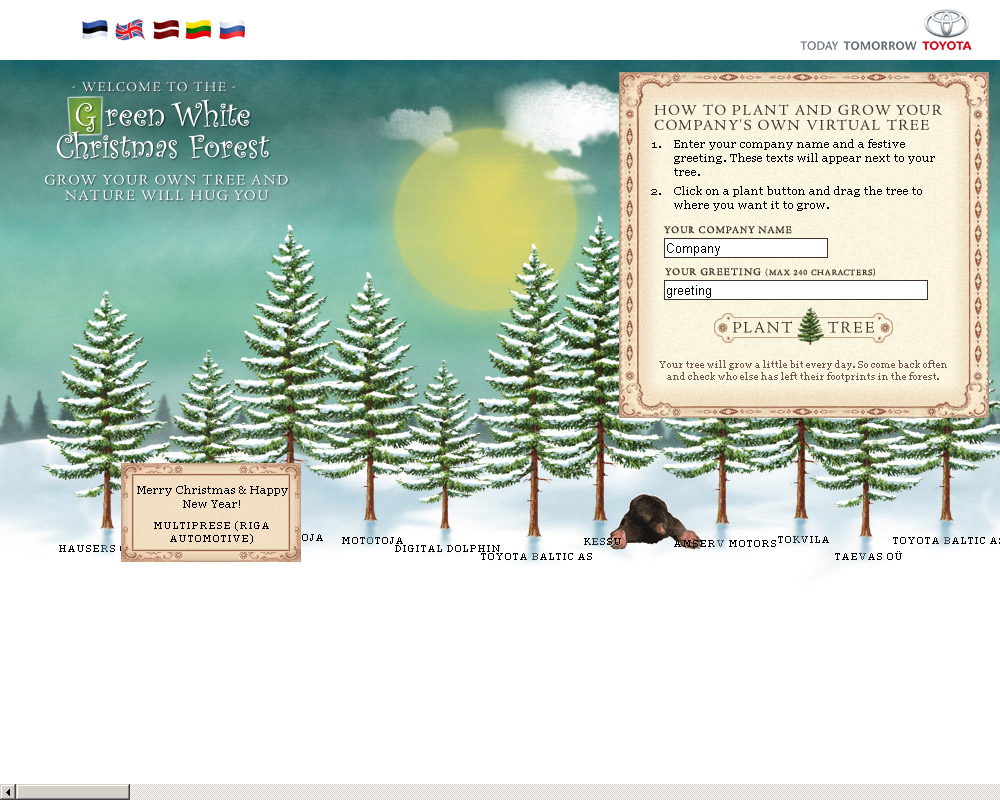 This Christmas Toyota Baltic asked all its partners to plant a virtual tree. This symbolizes Toyota 's concern for environment.