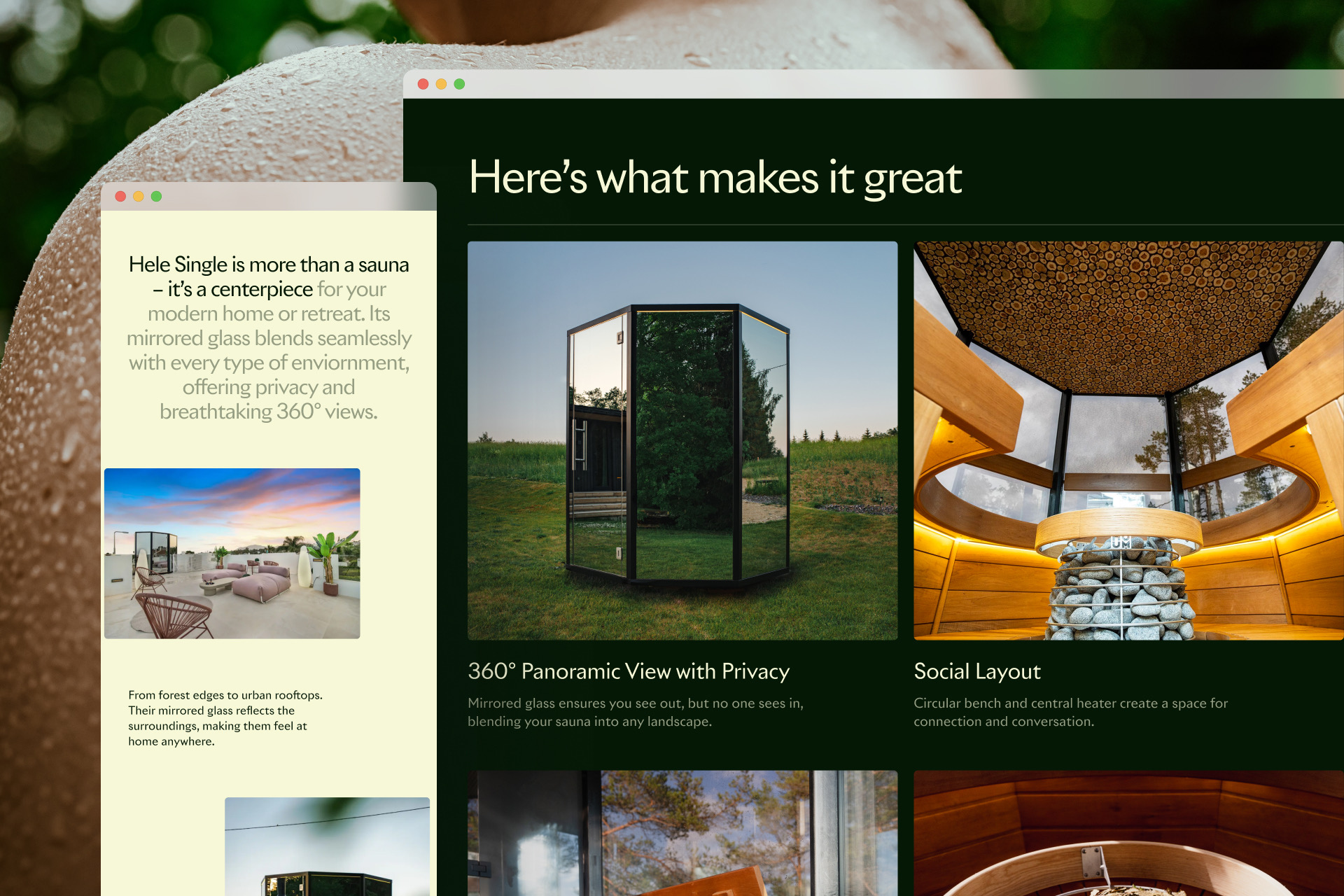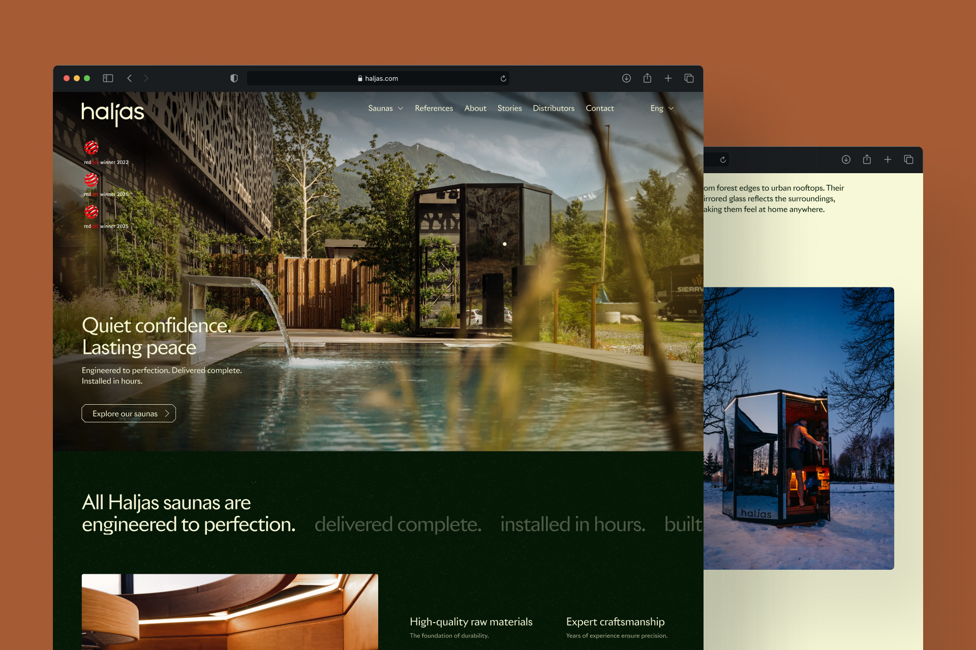 Haljase saunu võib leida nii butiikhotellide SPA-dest kui ka luksuslike villade terrassidelt. On väga oluline, et toote koduleht on sama efektne ja viimistletud kui toode ise. Haljase kodulehel on läbivalt suured ja kütkestavad toodet tutvustavad visuaalid. Emotsiooni lisavad mahedad animatsioonid ning lehte süübides jõuab ka väga põhjaliku ja elegantselt vormistatud informatsioonini.