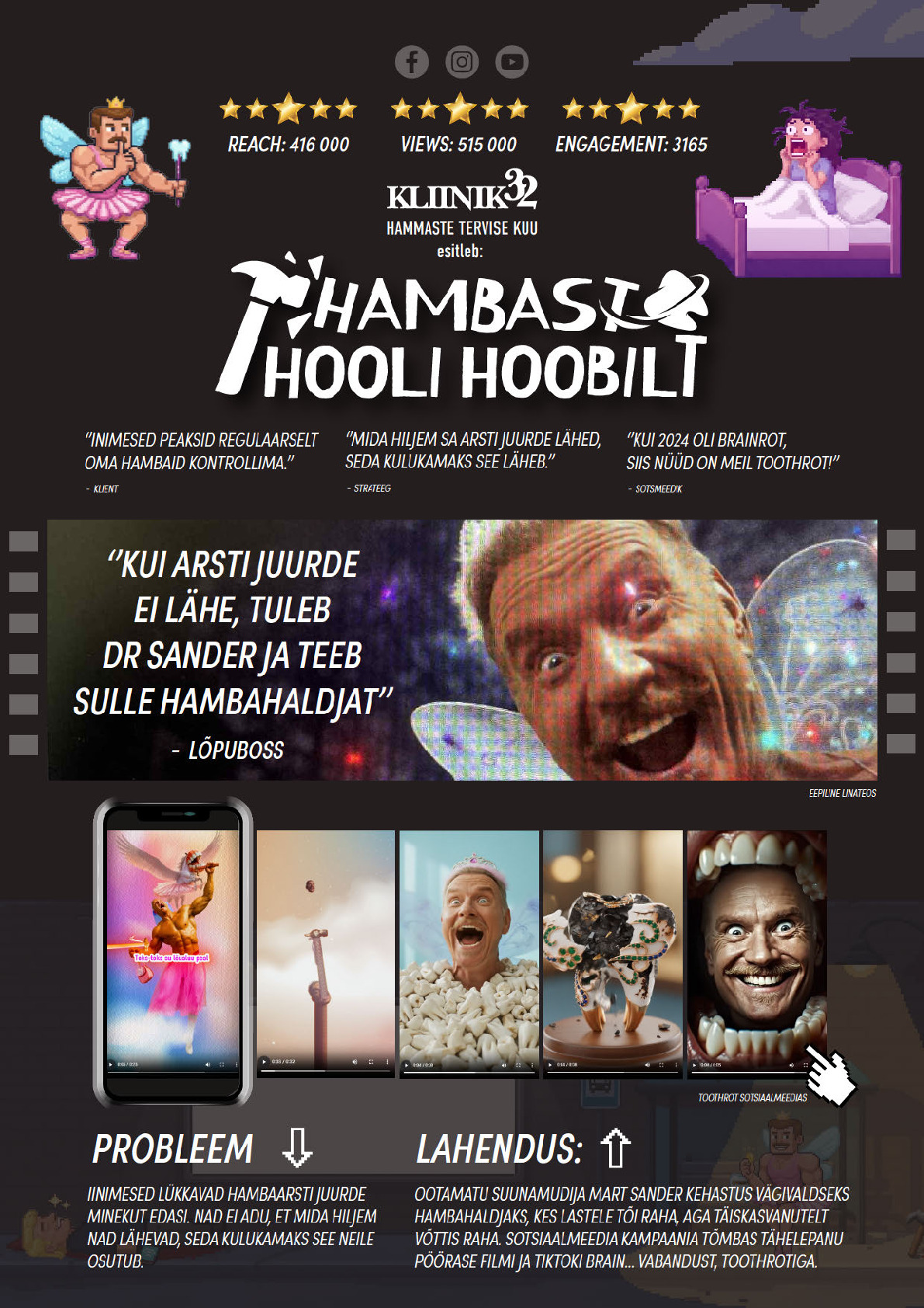 Hammaste Tervise Kuu tuletas inimestele meelde, et on vaja regulaarselt kontrollis käia. Sest hiljem läheb ravi kallimaks. Ootamatuks kampaania näoks sai tuntud korüfee Mart Sander, kes kehastus hambahaldjaks, kelle sarnast pole enne nähtud. Dr Sander möllas sotsiaalmeedias, tuues Brainroti asemel uue nuhtluse: Toothrot.