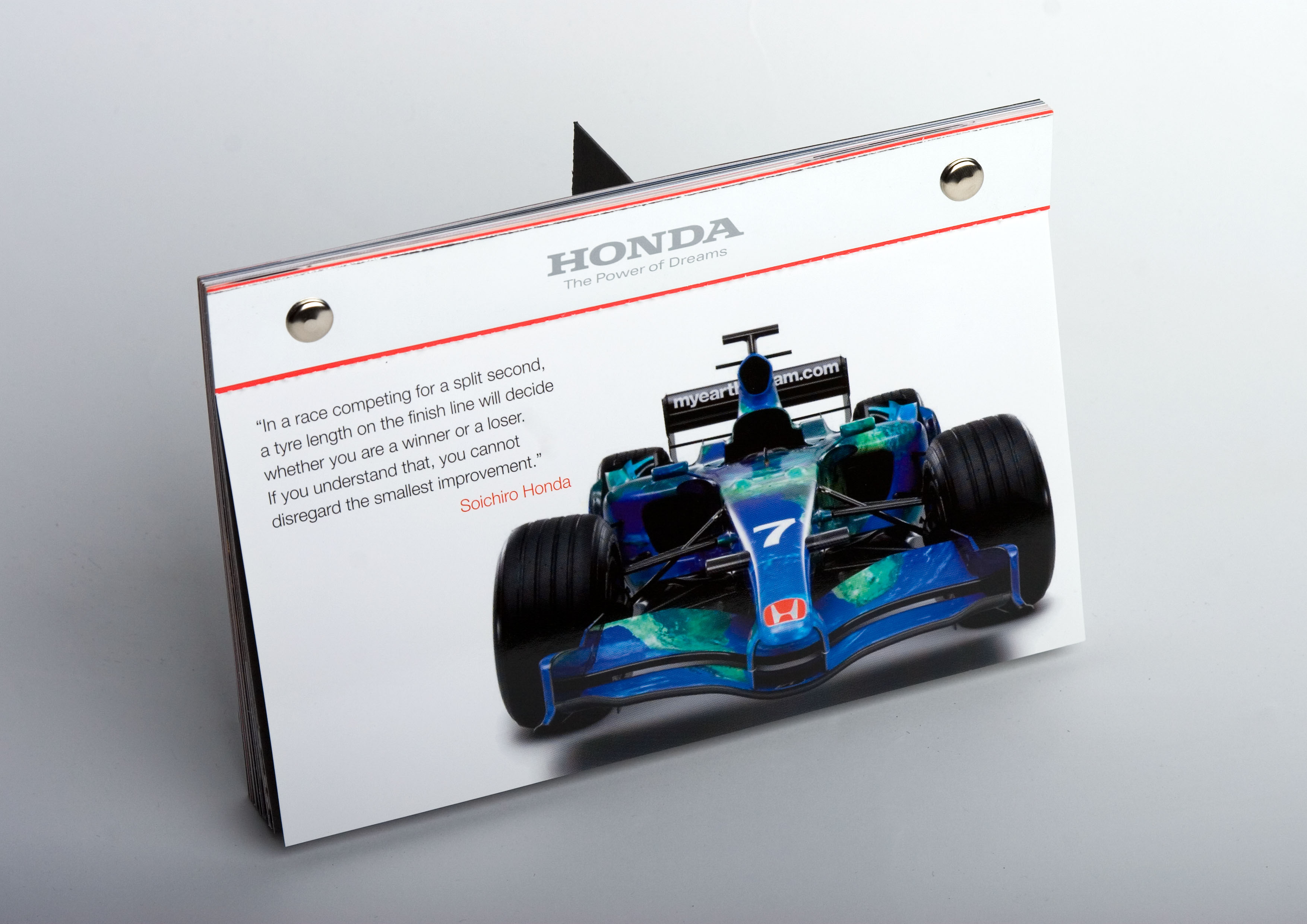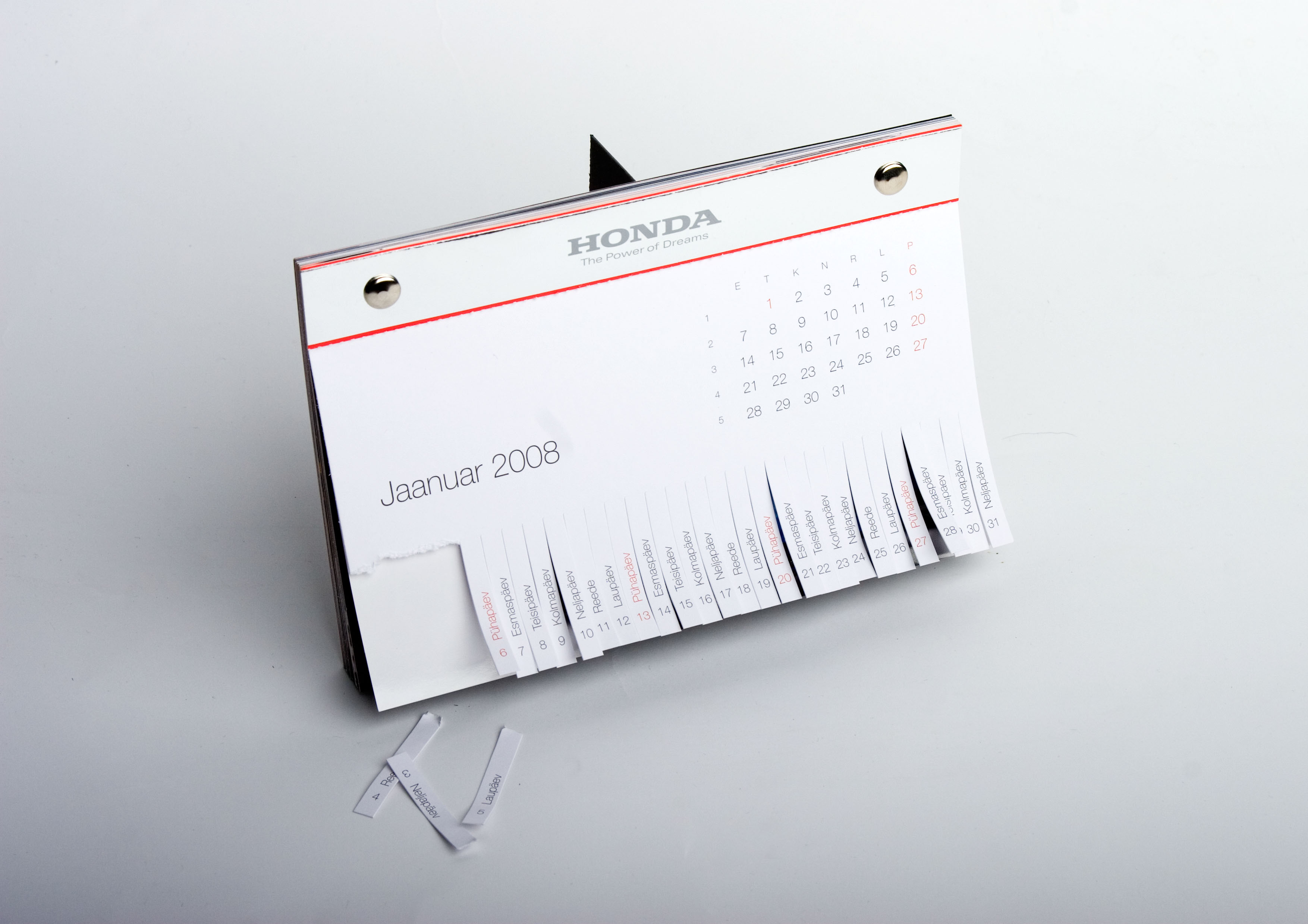 Kalender neile, kellele meeldib möödunud päeva ära rebida. Kuu lõpus tuleb rebitavate päevade alt välja pilt Honda korporatsiooni rajaja Soichiro Honda