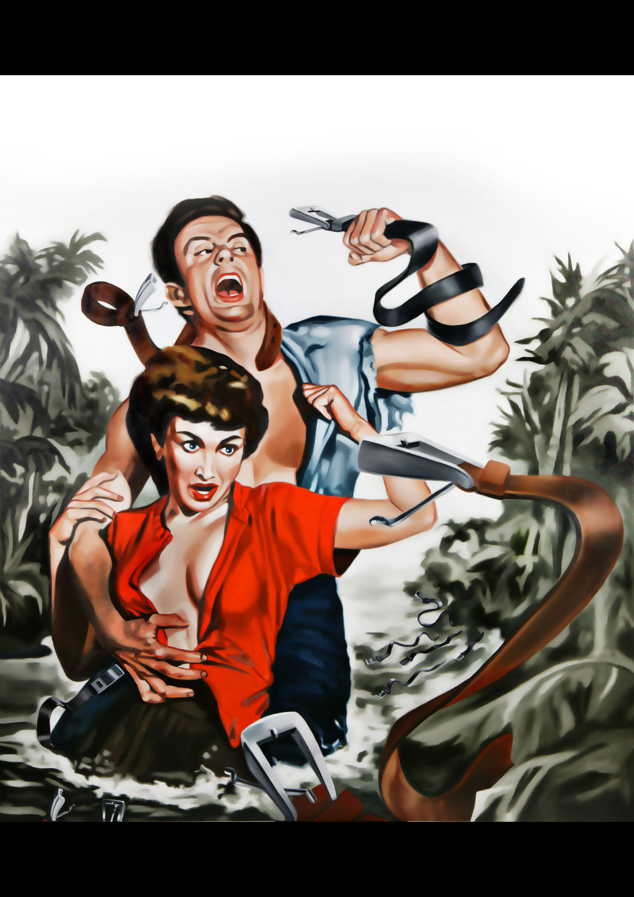 Kunstnik: Maarit Murka. B-filmide vaimus reklaam “punase vaiba” teemalisele moeüritusele.