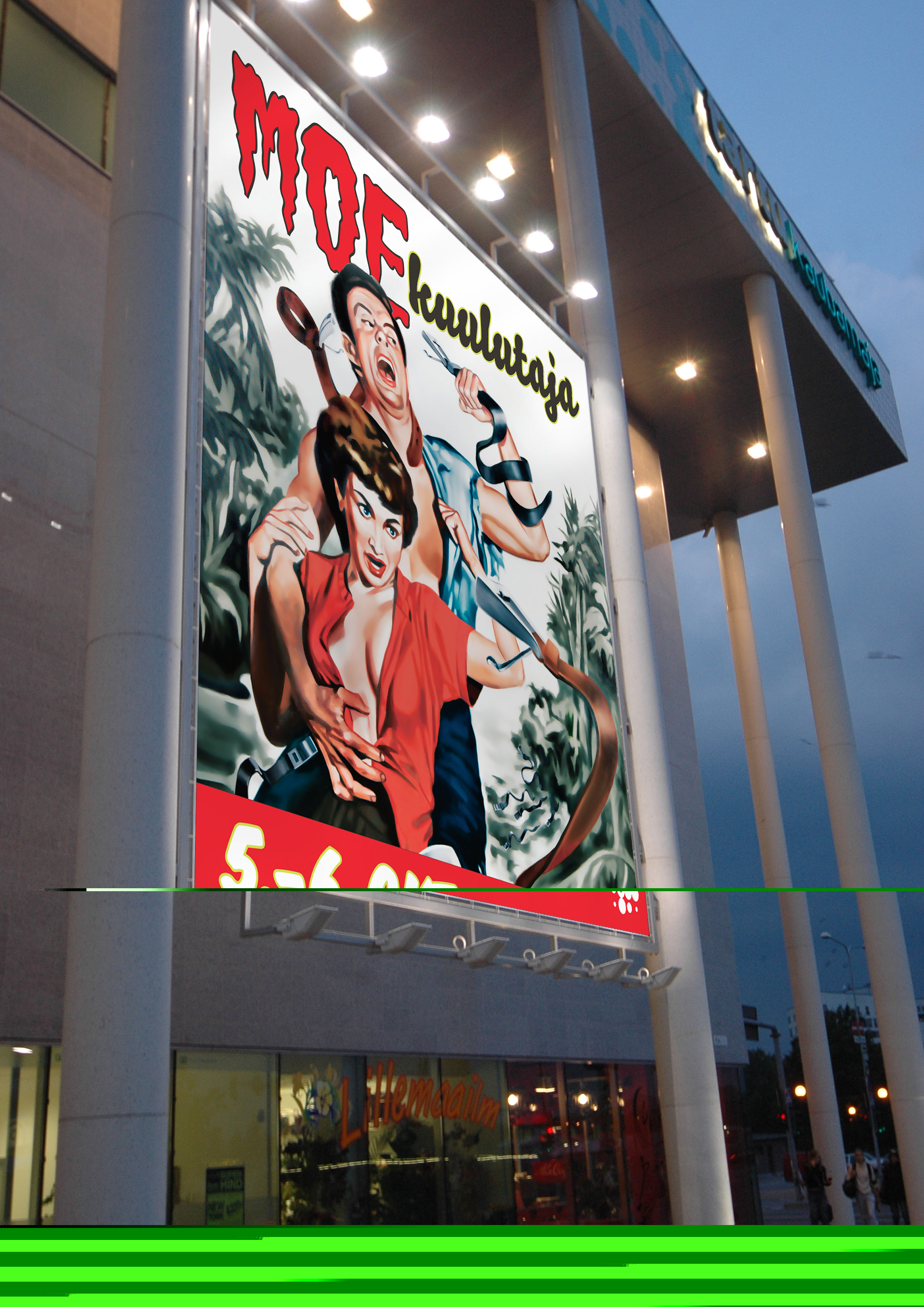 Artist: Maarit Murka. An ad in the spirit of B-movies to promote a red carpet style fashion event.