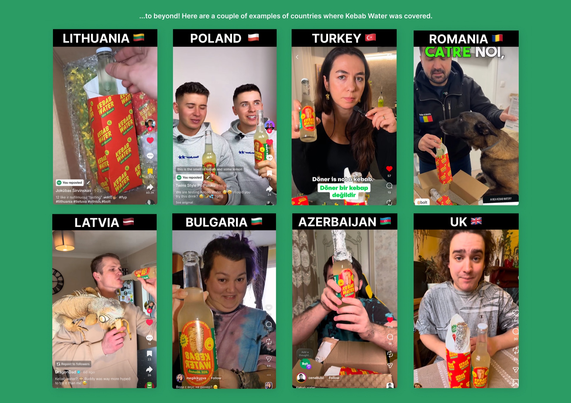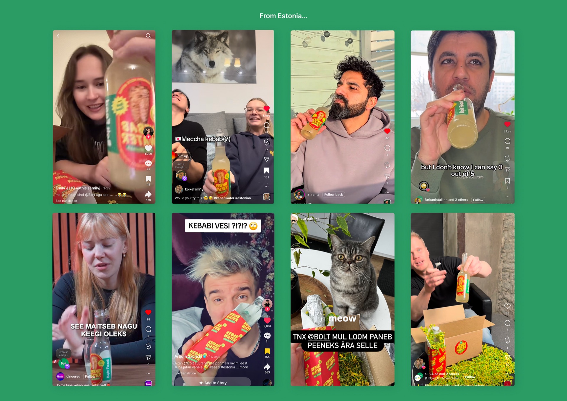 Bolt Food data showed 61% of kebab orders happen between 10 p.m. and 7 a.m., yet most skip drinks. So we created Kebab Water, a real electrolyte formula developed with TalTech flavour scientist Dr Kristel Vene. Only 300 bottles, distributed via PR and giveaways, turned into a UGC engine across 14+ countries. Result: 5M+ organic views, 5% engagement, multi-market media coverage.