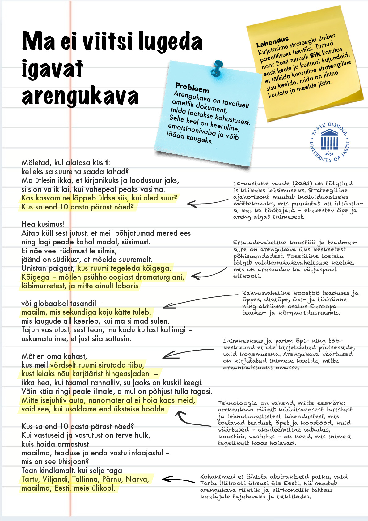 Muutsime igava ja ametliku arengukava poeetiliseks, inimlikuks videoks. Keeruline strateegiline dokument tõlgiti lihtsasse ja emotsionaalsesse keelde, mis kutsub vaatama, kuulama ja kaasa mõtlema. Arengukava ei olnud enam kohustuslik lugemine, vaid lugu, mida tahetakse lõpuni tarbida.