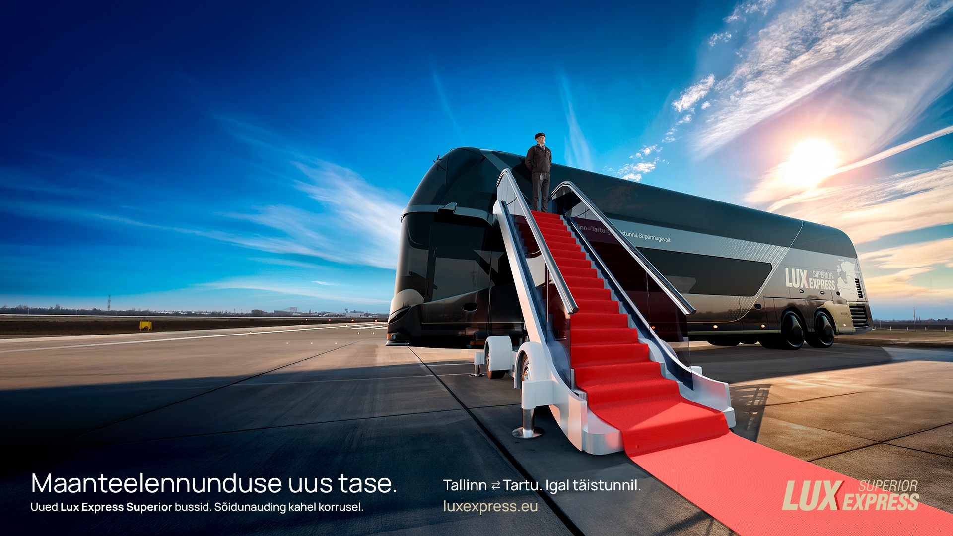 LuxExpress Superior klassi kahekordsed Neoplan bussid on liinibusside crème de la crème. Panoraamlaega ülakorrusel reisimine meenutab äriklassi lendu: avar jalaruum, laiad mugavad istmed, meelelahutus, tasuta WiFi ja kohv ning sujuv õhkvedrustus loovad tunde, nagu hõljuksid pilvede vahel. See pole lihtsalt maanteetransport – see on maanteelennundus. Tere tulemast pardale!