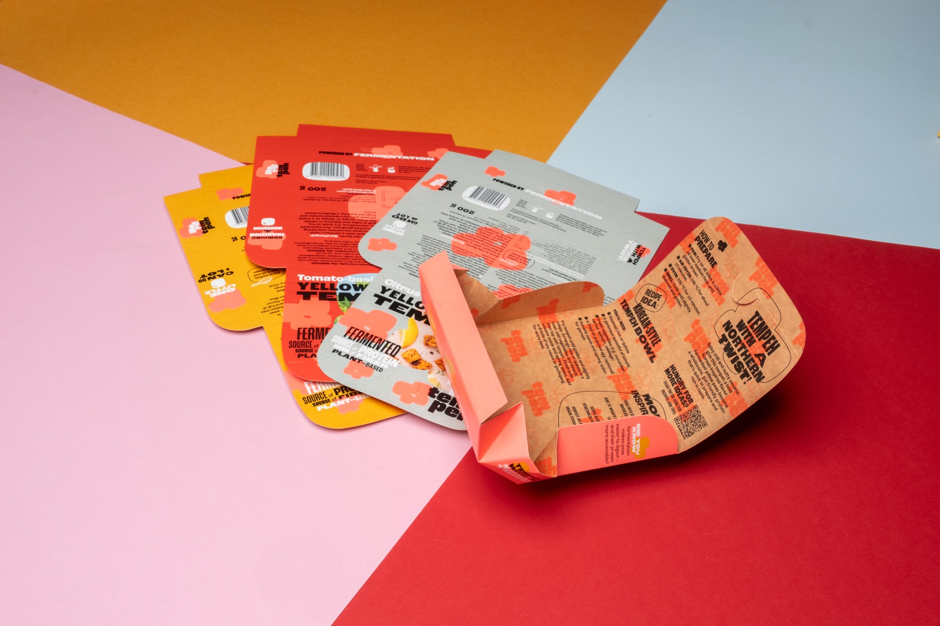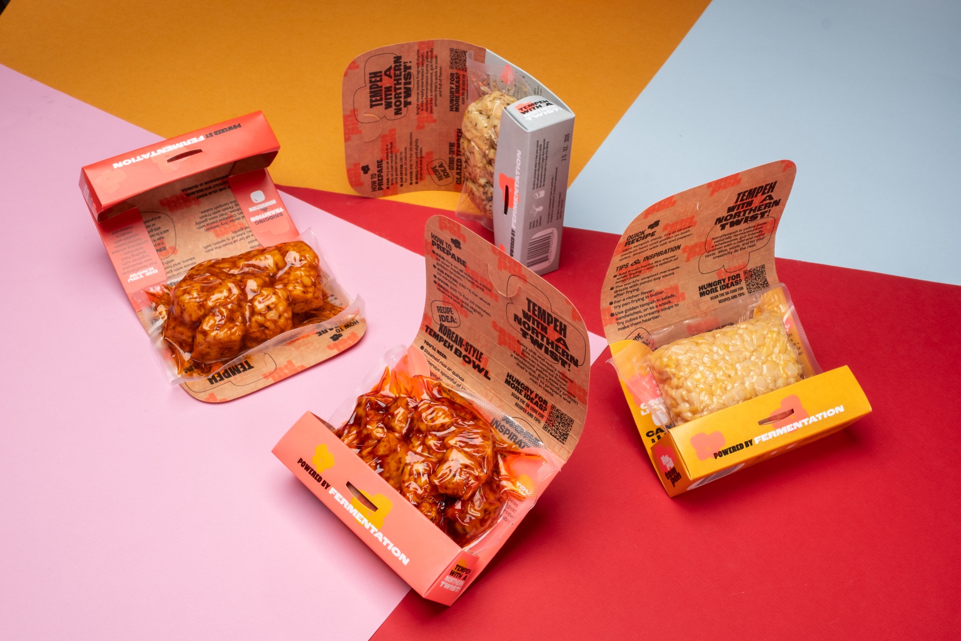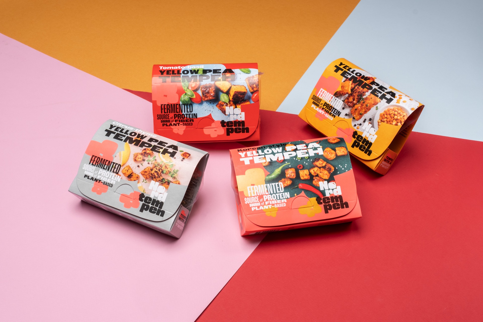 NordTempeh is still a pea, but with a little twist. Tastes of the world in a local way: good old pea in an Indonesian dish. And people seem to like it. So much so that it needed an automated production line and a new concept for the packaging. The result is an origami that fits on A4, needs no glue, stands out on shelves, and doesn’t take itself too seriously.