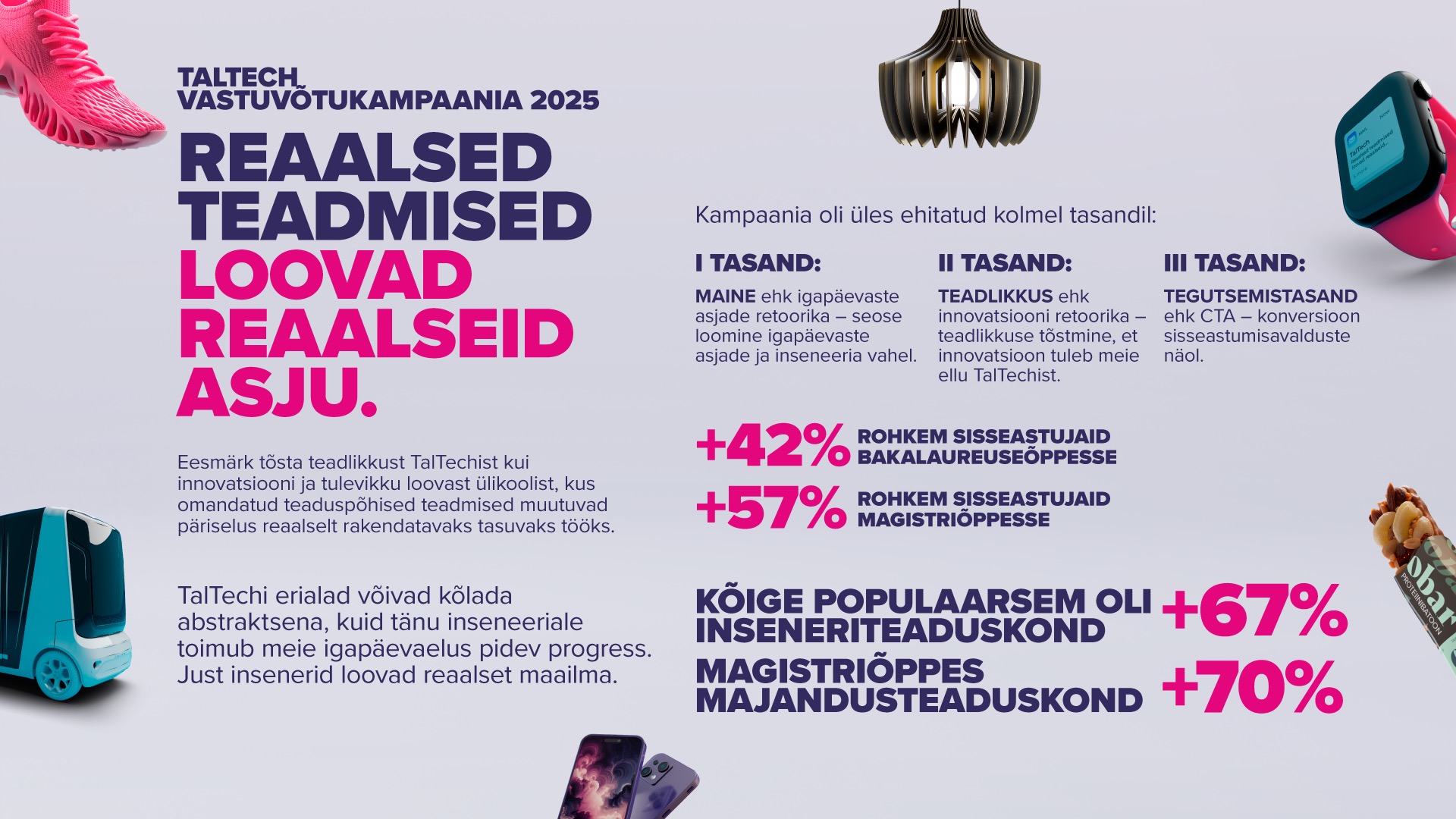Reaalsed teadmised loovad reaalseid asju. Inseneriteadus ja tehniline loovus on progressi peamised alustalad. Valdkondadeülene koostöö loob iga päev uut tegelikkust. Eestis koolitab selliseid talente TalTech. 2025. aasta vastuvõtukampaania, mis keskendus erialadeülesele mõjule, osutus kõigi aegade edukaimaks vastuvõtukampaaniaks ning tegi TalTechist Eesti kõige kiiremini kasvava ülikooli.