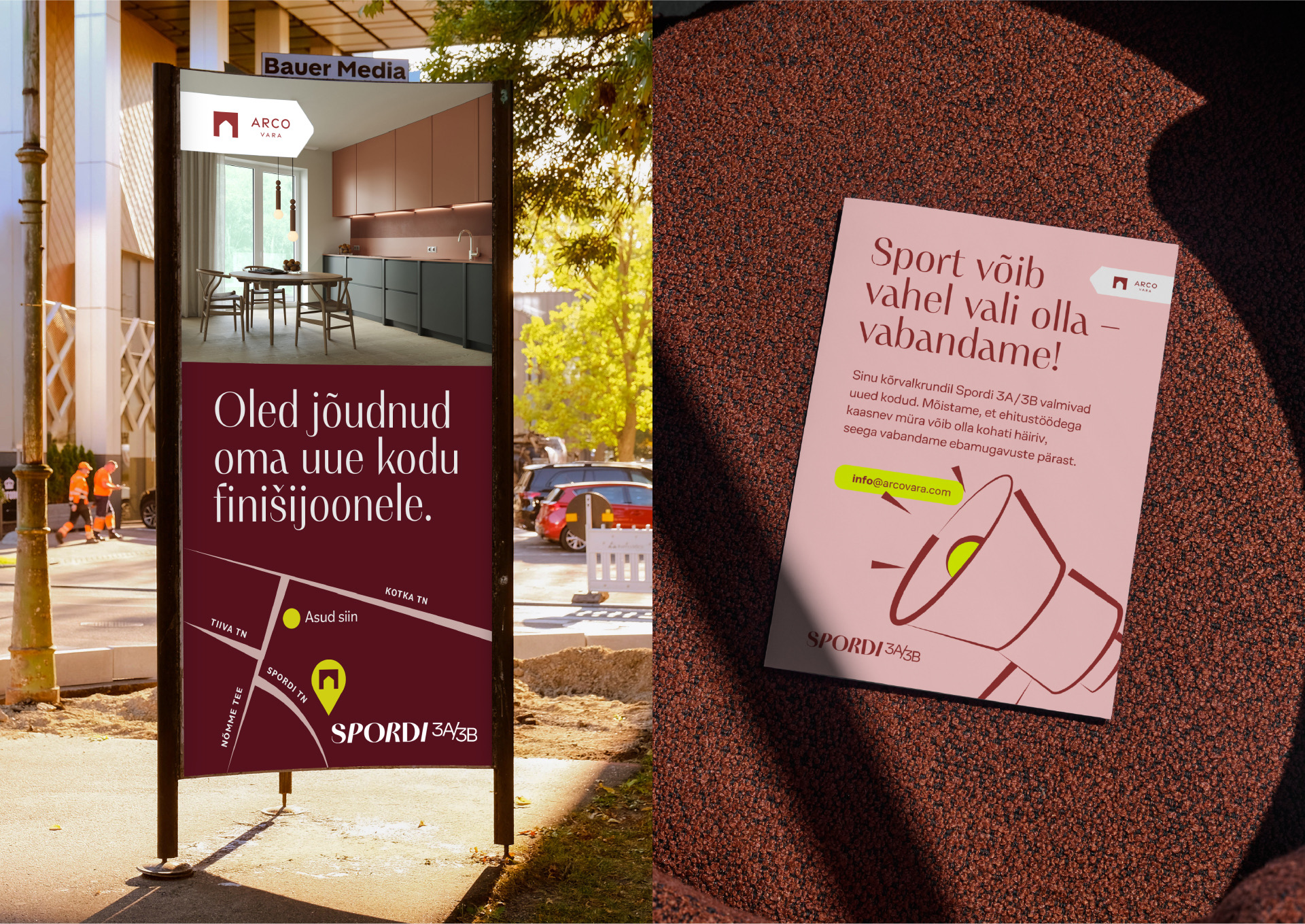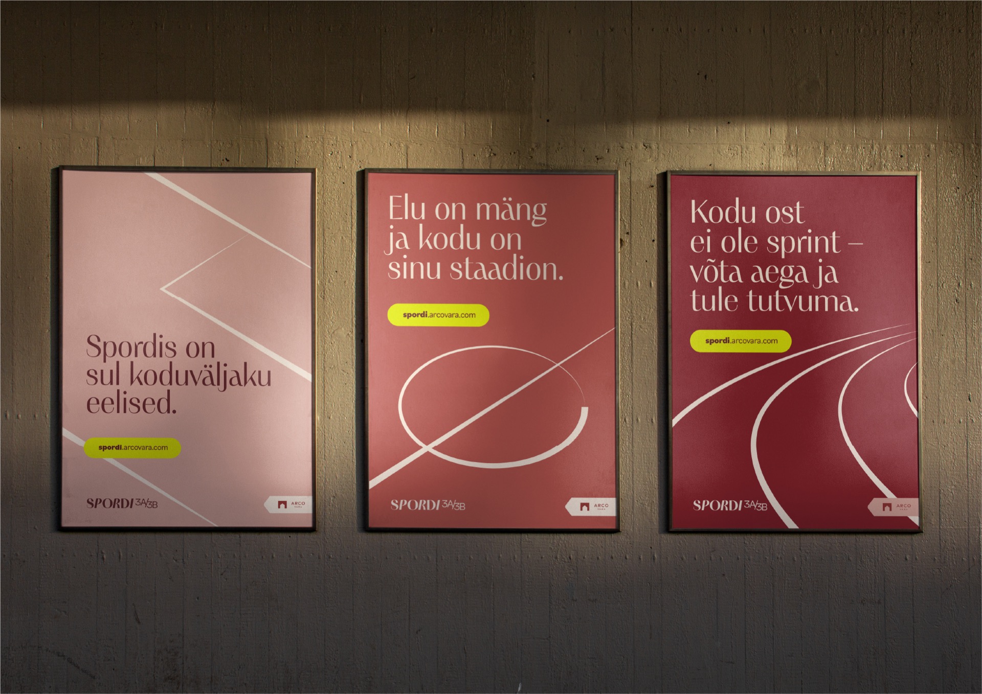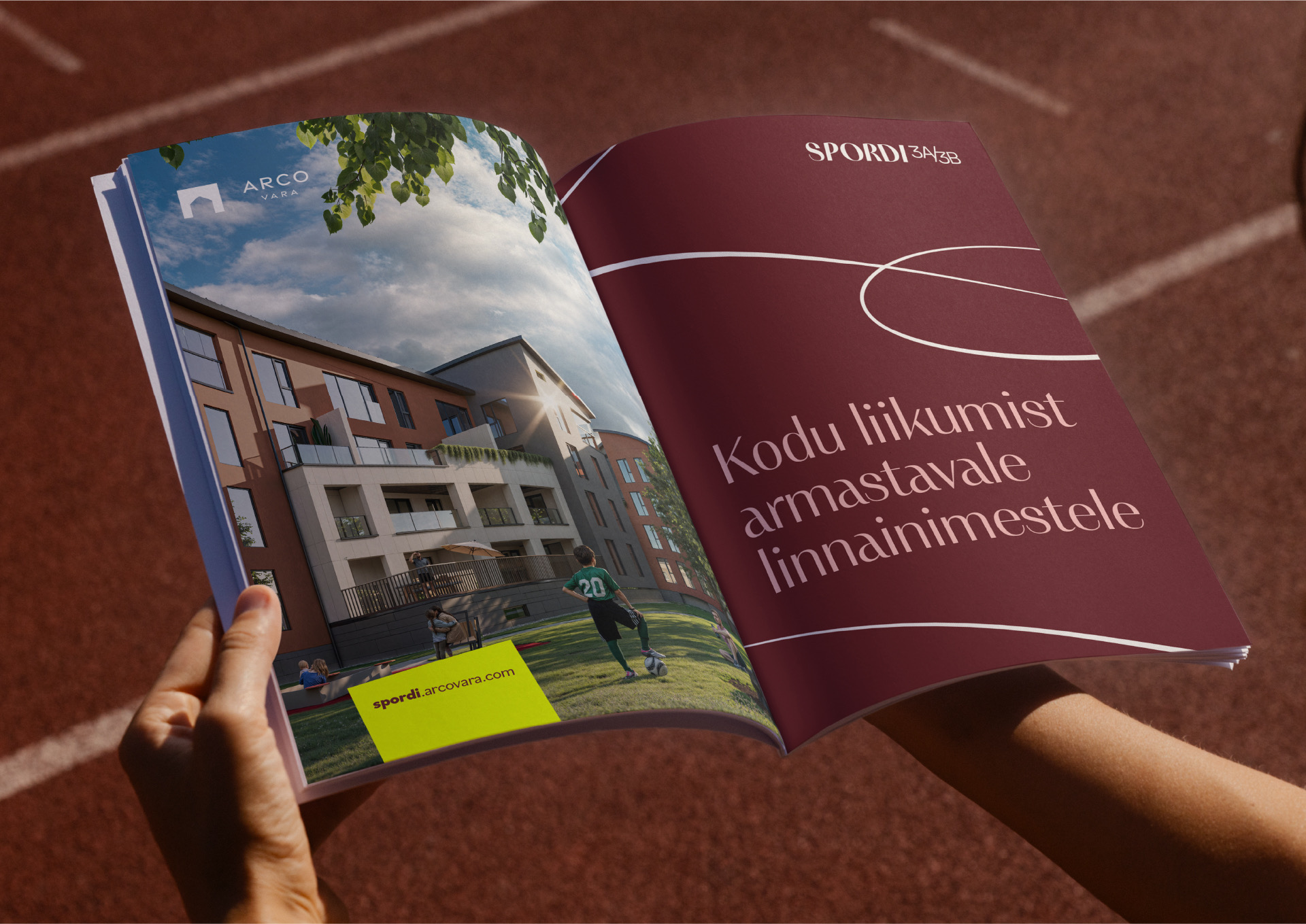 Arco Vara uusarendus Spordi 3A/3B võtab oma tänavanimest inspireerituna selge sihtrühma – liikumist ja aktiivset eluviisi armastavad inimesed – ajal, mil enamik Eesti uusarendusi mängib turvaliselt ja stereotüüpse sõnumikeelega. Projekti dünaamiline graafikakeel on inspireeritud spordist ja spordiväljakutest ning juhatab uued elanikud õigele rajale – uude koju kui isiklikule mänguplatsile.