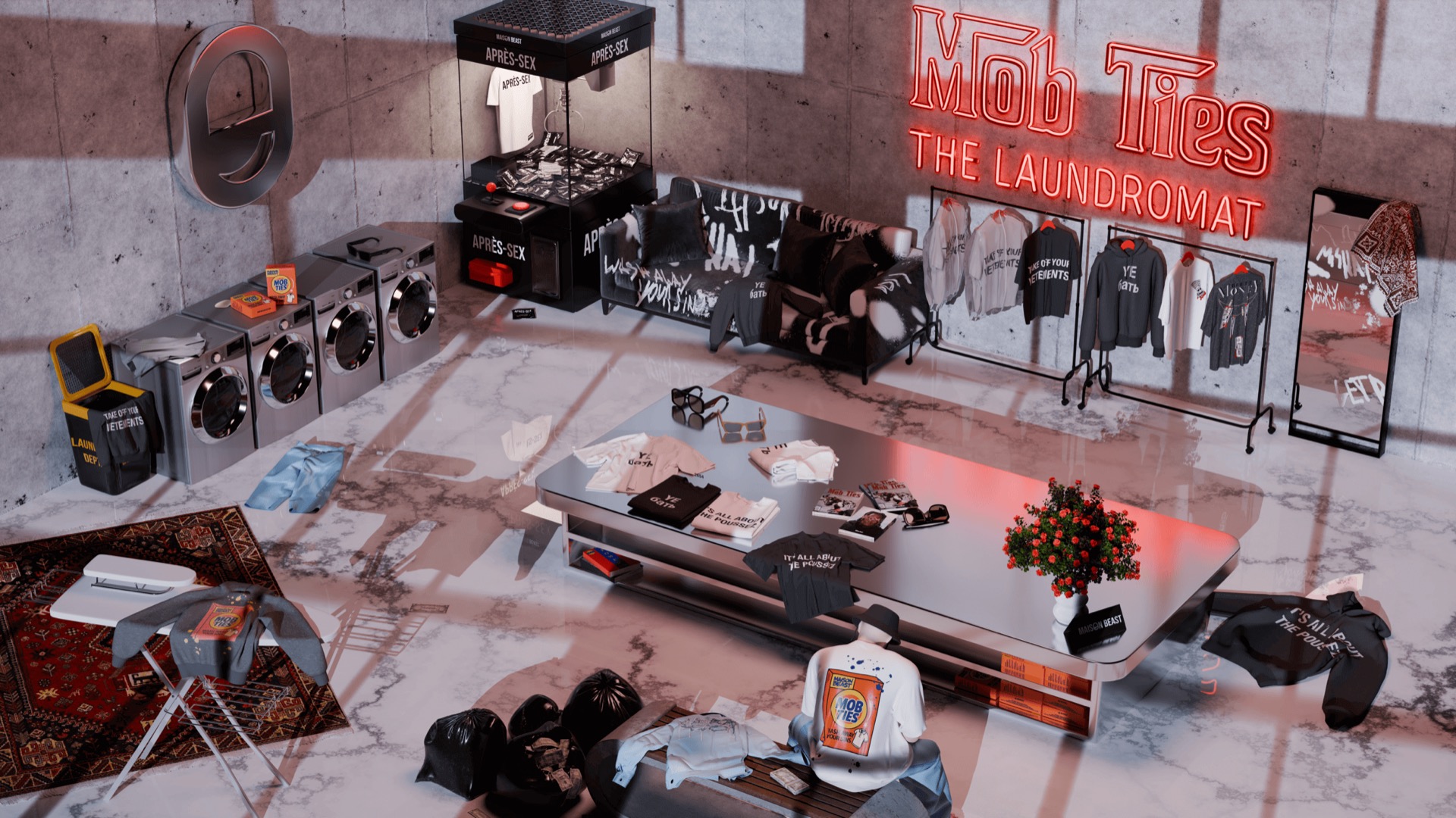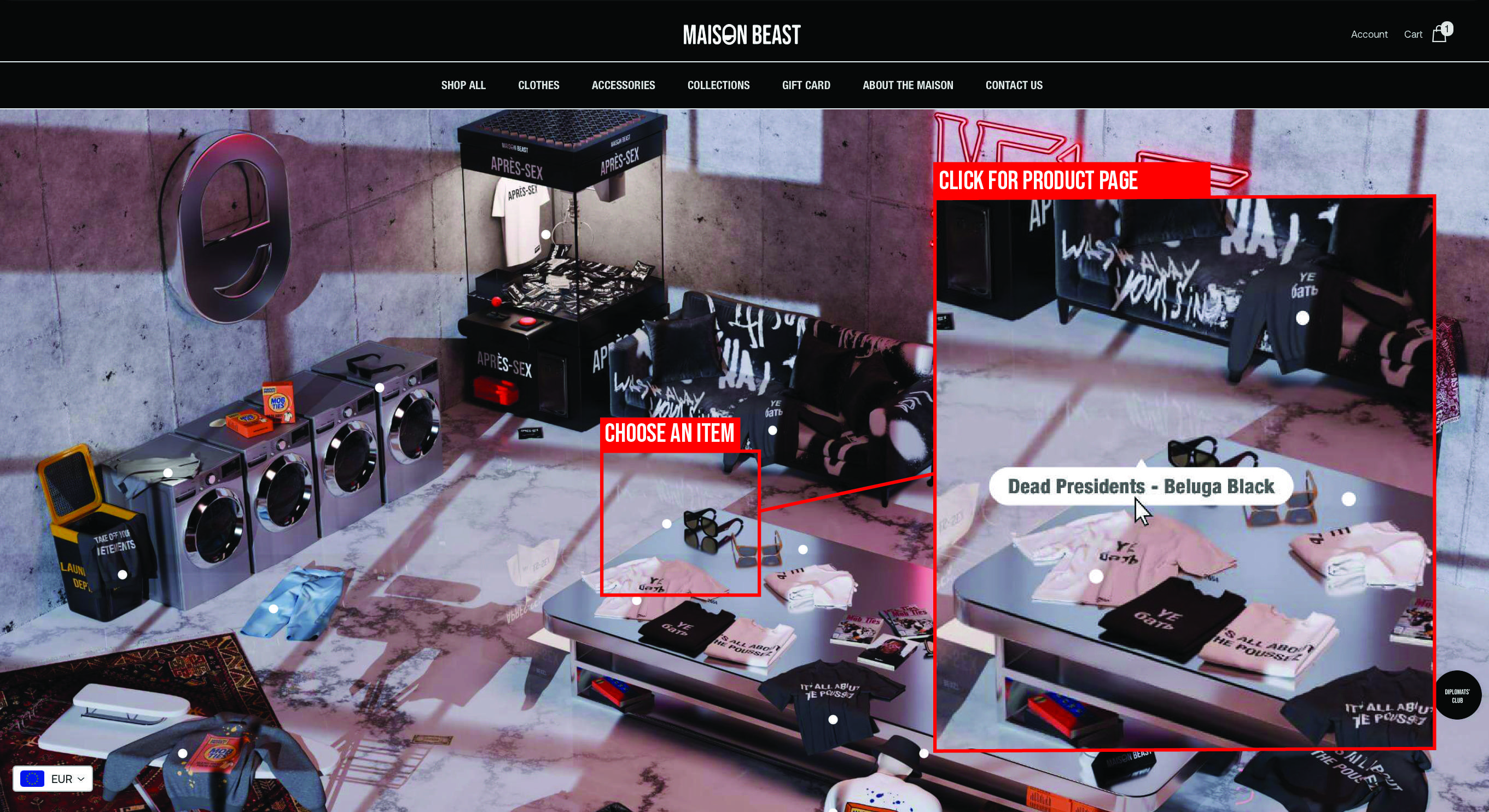 Virtuaalne pesumaja viis Maison Beasti füüsilise „pesumaja“ poe veebikeskkonda üle. Lõime interaktiivse 3D-pesumaja, kus paigutasime kollektsioon üle kogu ruumi laiali. Kasutajad said keskkonnas kursoriga vabalt ringi liikuda ning jõudsid toote peale klikkides otse vastava tooteleheni. 3D-pesumaja muutis e-kaubanduse elamuseks, jäädes truuks maffiast inspireeritud kontseptsioonile.