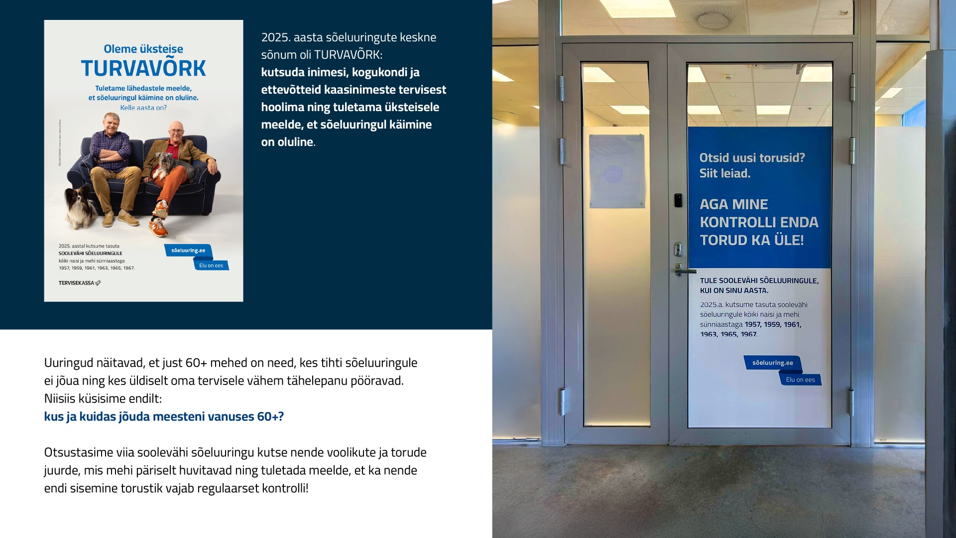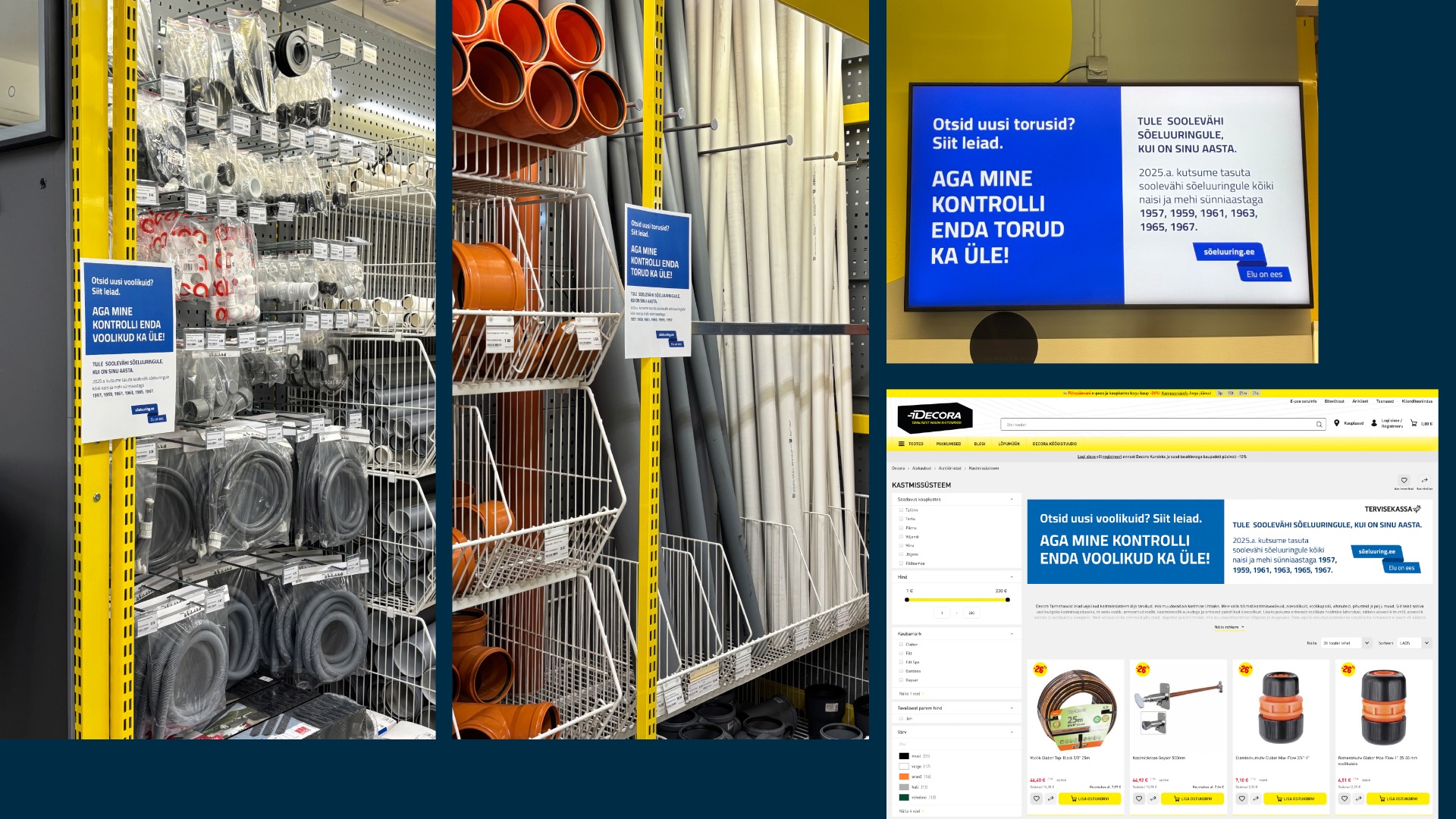 Uuringud näitavad, et just 60+ mehed on need, kes tihti sõeluuringule ei jõua ning kes üldiselt oma tervisele vähem tähelepanu pööravad. Niisiis küsisime endilt: kus ja kuidas jõuda meesteni vanuses 60+? Otsustasime viia soolevähi sõeluuringu kutse nende voolikute ja torude juurde, mis mehi päriselt huvitavad ning tuletada meelde, et ka nende endi sisemine torustik vajab regulaarset kontrolli!