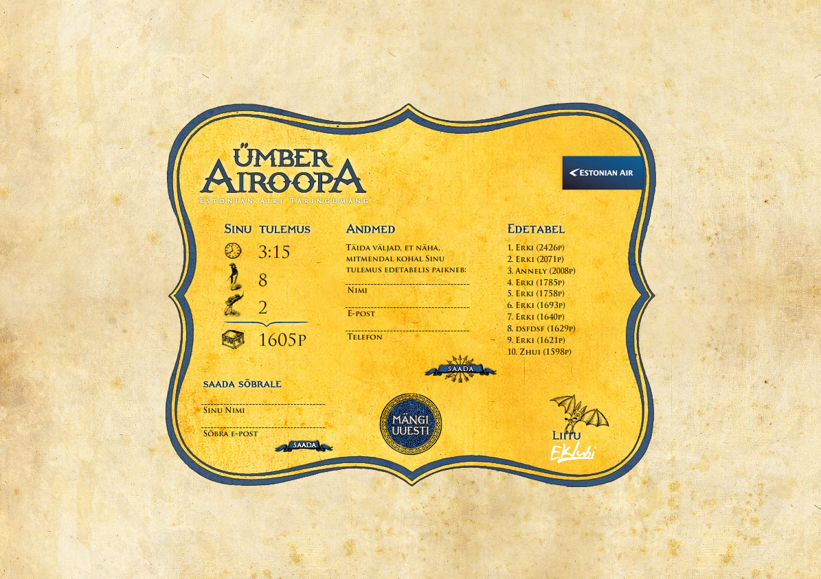 Estonian Air's dice game "Across Airope" flew all participiants across the map of Airope. The game was played 52 562 times in 77 countries.