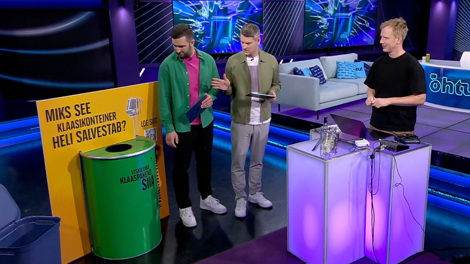 Johnnie Walkeri ESG aktsioon #walkwithus külas Õhtu saates, kus Raul Ojamaa tõestas saatejuhtidele, et klaasi taaskasutusse viimise helidest on võimalik teha muusikat.